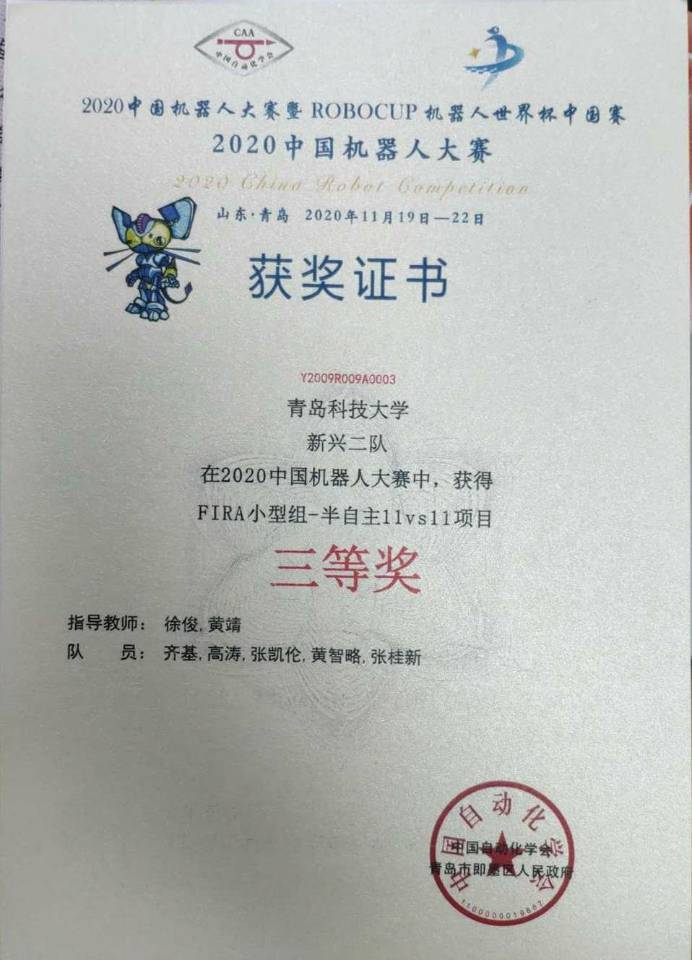 2020中国机器人大赛暨ROBOCUP机器人世界杯中国赛三等奖2项