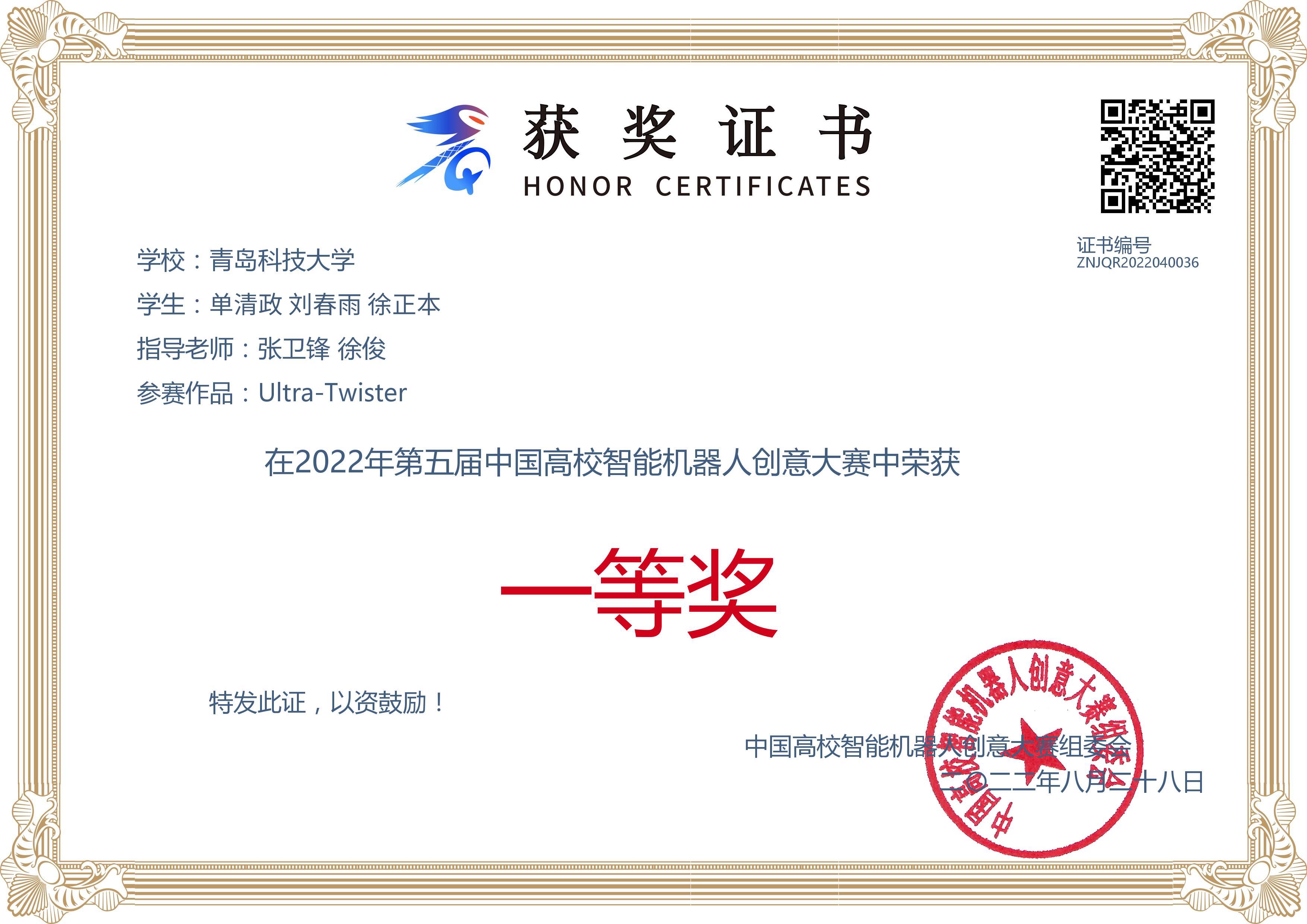 第五届中国高校智能机器人创意大赛国家级一等奖3项