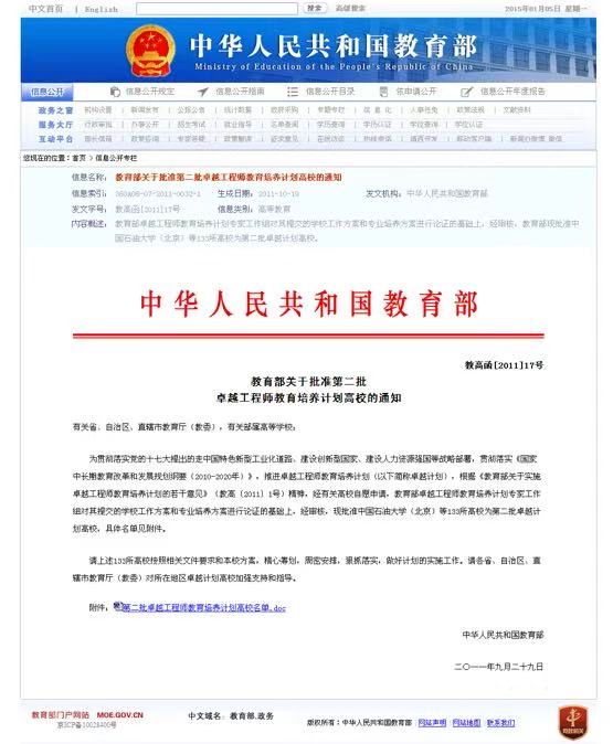 2011,国家级卓越工程师教育培养计划-青岛科技大学机械工程及自动化专业