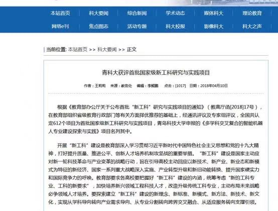 2018-2020,教育部“新工科研究与实践项目”——多学科交叉复合的智能机器人专业建设探索与实践